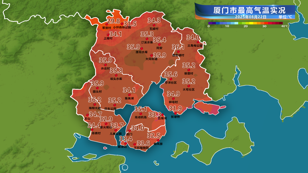 島外大部分地區突破了35℃