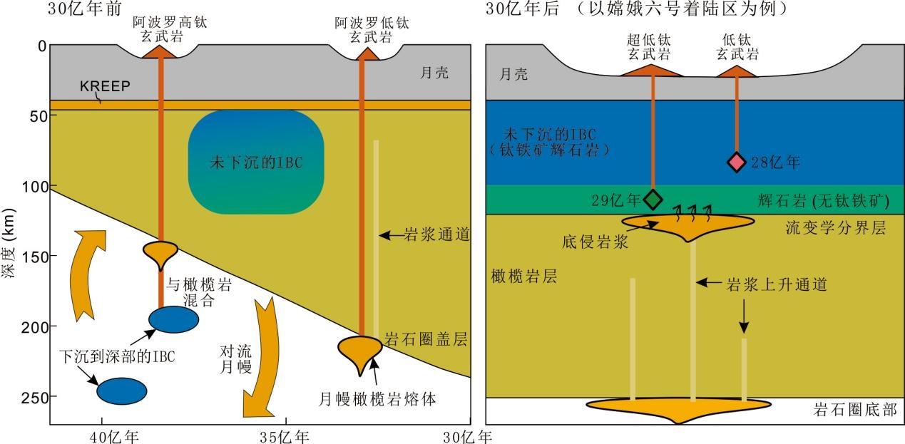 傳統觀點曾推測月球晚期火山活動可能與源區富水或富含放射性生熱元素(KREEP)有關,但嫦娥五號、六號樣品均否定了這一假説:它們的源區既“乾燥”又缺乏放射性生熱元素。基於對嫦娥六號兩類玄武岩的對比,研究團隊提出了一個新的熱動力機制:隨着月球冷卻,其岩石圈不斷增厚,深部岩漿難以直接噴出,只能滯留在月幔淺部輝石岩層的底部。這些“被卡住的”岩漿可向上傳導熱量,從而觸發淺部月幔部分熔融,導致火山噴發。