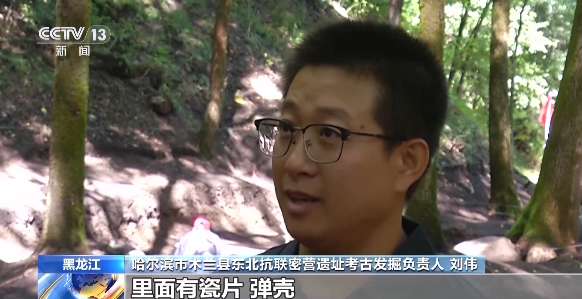 *哈爾濱市木蘭縣東北抗聯密營遺址考古發掘負責人 劉偉:*裏面有瓷片、彈殼,還有一些保留下來的碳粒或者是糧食。這是抗聯戰士使用過的,能夠讓我們更加生動地看到那段艱苦的歲月。