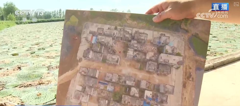 離芡實種植基地不遠是當地特有的建築——莊台,看上去像是屹立在平地之上的“土丘”,這是人們用來抵禦淮河水災的。早期的莊台多為自發修建,環境比較差。大家看我手上的這張老照片,這就是過去莊台的樣子。曾經,這裏人均居住面積不足10平方米,房屋破舊、環境髒亂,“垃圾靠風颳、污水靠蒸發”是當時的真實寫照。現在當地通過居民遷建、人居環境整治、水電改造、打通主幹道、鋪設污水管網等措施,莊台過去髒亂差的面貌一去不復返。如今的莊台,道路寬敞,綠樹成蔭,公共綠地、景觀樹隨處可見,居民的居住條件和生活環境大為改觀。
