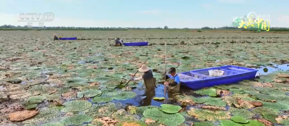 這個芡實種植基地總面積有4000多畝,以前是以種植小麥水稻為主。但是因為地處蒙窪蓄洪區,地勢低窪,過去水患頻發,容易積水,種植小麥水稻時時常受到澇害影響,產量不高。順應自然規律,近年來,當地通過調整農業種植結構,大力發展適應性農業,因地制宜發展適合在低窪地種植的作物。比如説芡實,它是一種水生植物,營養價值高,市場需求旺盛。像記者現在所在的這個芡實種植基地,畝產可達600斤左右,每年畝均產值6000多元,而且採收期也帶動村民的勞務收入顯著增長,部分羣眾通過流轉土地和務工實現人均年增收3萬多元。變水患為水利,變對抗為適應,曾經被水患困擾的土地現在成了人們的“致富田”。