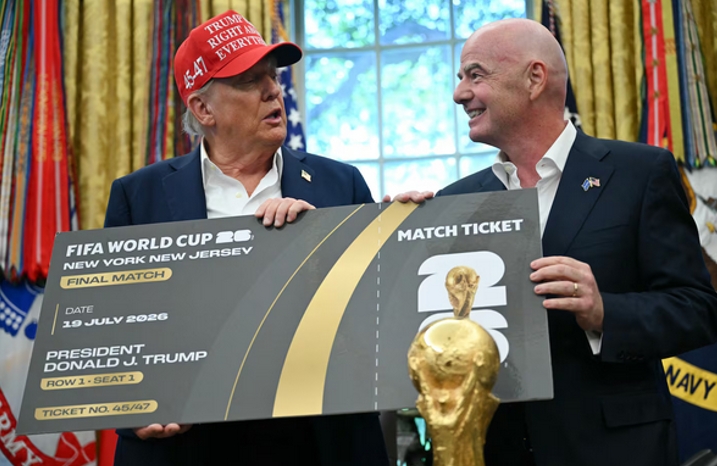 “不過因凡蒂諾還是確保總統不會空手而歸”,《野獸日報》稱。作為“補償”,因凡蒂諾向特朗普贈送了明年世界盃決賽巨型紙質版的首張門票,並暗示表現平平的美國男足有望贏得明年夏天的比賽。報道稱,雖然因凡蒂諾婉拒特朗普拿走“大力神杯”,但特朗普此前已將2025世俱杯冠軍的獎盃放在橢圓形辦公室裏展示,迫使冠軍切爾西俱樂部只能用複製品獎盃代替。