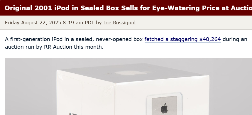 從399到40264美元,初代iPod、iPhone未拆封版拍出天價