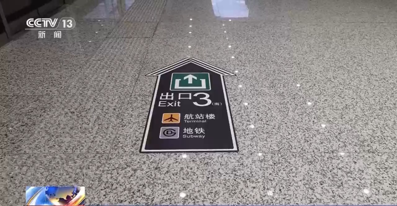 *總枱央視記者 曹丹:*從鐵路的出站口出來,大概三十到五十米的位置就是航空公司值機櫃台。再從這往前走大概100米,就是國內的安檢通道。旅客到達大興機場出站以後,大概一到兩分鐘就可以快速抵達安檢通道進行安檢。