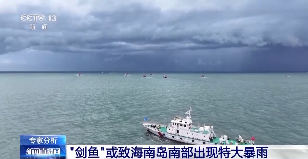 *中央氣象台首席預報員 許映龍:*來看一下台風最新發展動態,位於菲律賓呂宋島以東的熱帶低壓,在今天上午移入了我國南海海域,並發展為今年的第13號颱風“劍魚”,“劍魚”這個颱風名字是來自於日本。它影響的範圍相對來説比較廣,預計“劍魚”將以每小時25公里左右的速度,向西邊偏北方向移動,強度是逐漸增強的,逐漸向海南島的南部沿海靠近,有可能在明天(24日)下午登陸或擦過海南島的南部沿海,然後趨向越南中部這一帶地區。