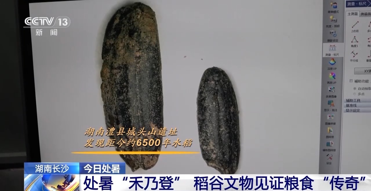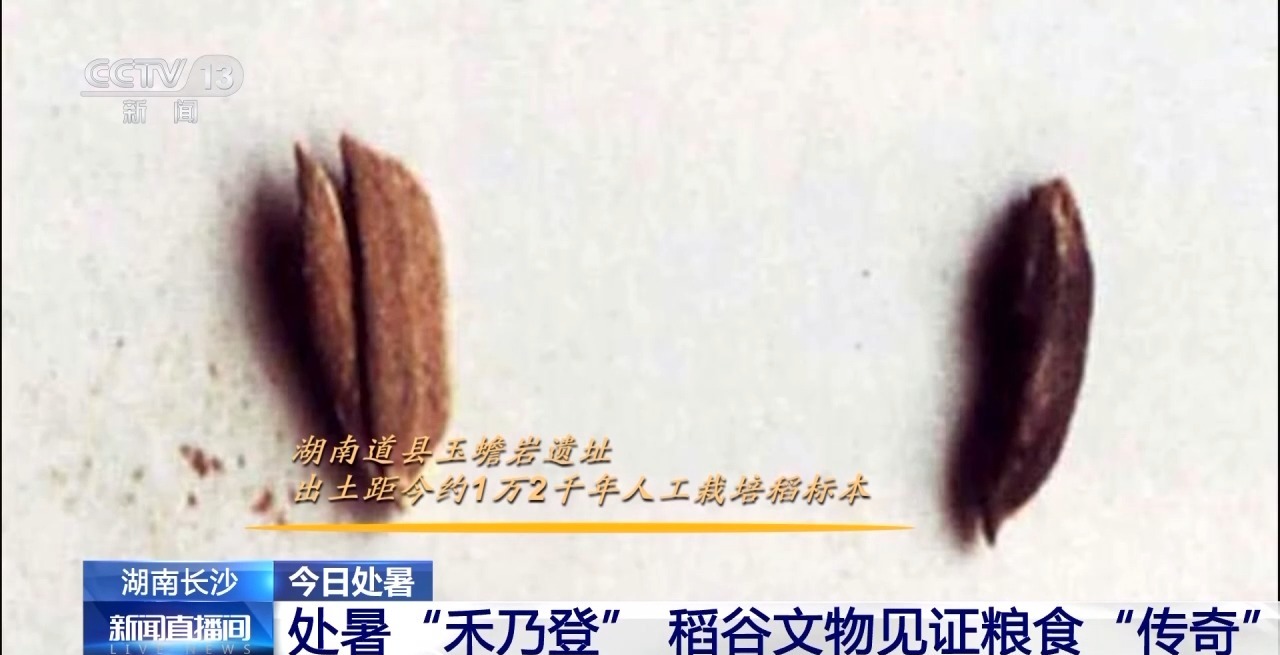 湖南省文物考古研究所原副所長 顧海濱:我們從湖南不同遺址出土的這些炭化水稻,能夠把它分為三個階段。第一個就是10000多年以來,我們把它叫稻作的孕育階段;之後就是距今8000多年一直到6000多年,叫稻作的形成階段;到了5000年湖南澧縣雞叫城遺址的時候,整個遺址範圍出土了80多平方米、15釐米厚的穀糠,我們推測當時這個穀糠能夠產出的水稻大概是22萬噸,所以我們就説當時在距今5000多年的時候,已經形成一個農業社會了。