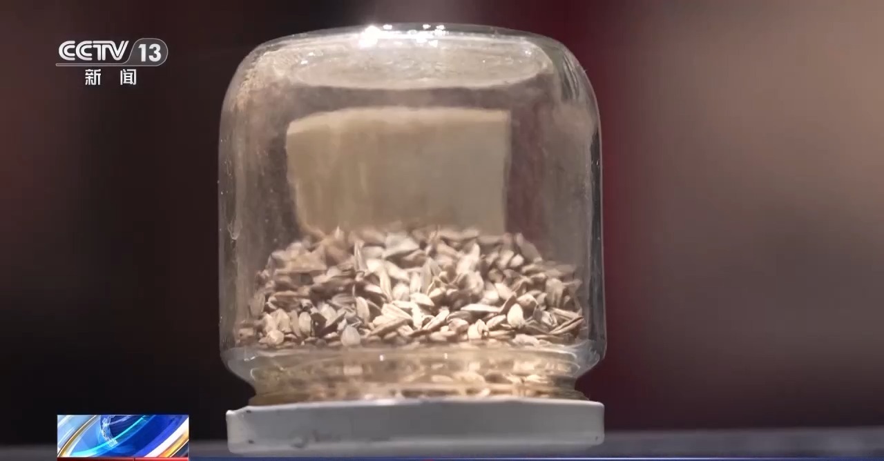 *隆平水稻博物館講解員盧雅靖:*發現的時候剛好是湖南農業大學一位教授參與了考古工作,當時看到這個稻穀被裝在一袋麻袋裏面,他就立即把它拿出來,裝到了一個密封的玻璃器皿裏,一直對它進行密封保存。