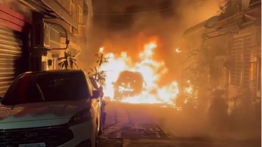 【環球網報道】據三立新聞網等台媒8月25日報道,台灣新北市新店區今日(25日)凌晨3時許發生嚴重火警。一輛停在行政街巷弄路中央的汽車突然起火,車輛旁還放置瓦斯罐,導致發生多起爆炸,波及一旁民宅。該汽車因不明原因突然起火燃燒,突如其來的火勢短時間內就將整條巷弄陷入火海,“場面相當嚇人,畫面曝光後也引發討論”。