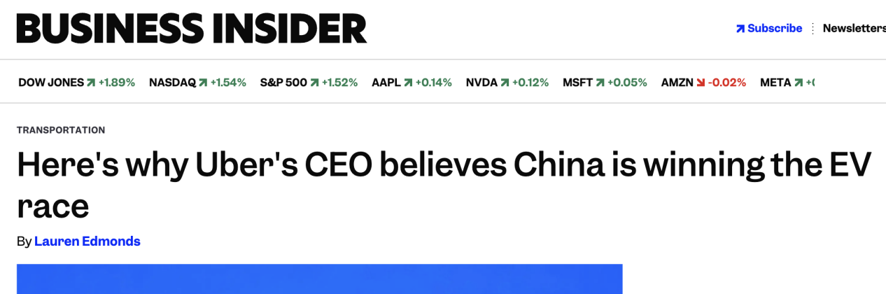 Uber CEO:中國車企創新速度令人驚歎,為全球提供可複製的電動化路徑