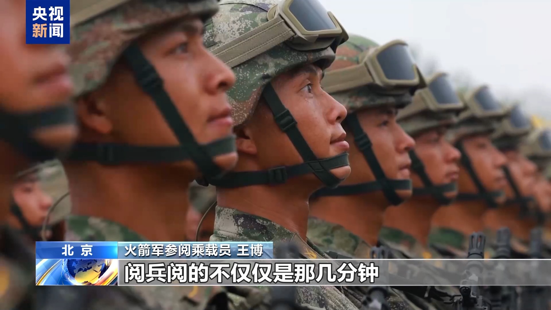 *火箭軍參閲乘載員 王博:*能夠站在長安街,能夠登上我們威武的導彈發射車,駛過天安門,接受黨和人民的檢閲,是我作為一名火箭兵的無上榮光。現在,我越來越深刻地體會到,閲兵閲的不僅僅是那幾分鐘,閲的是我們練兵的過程。