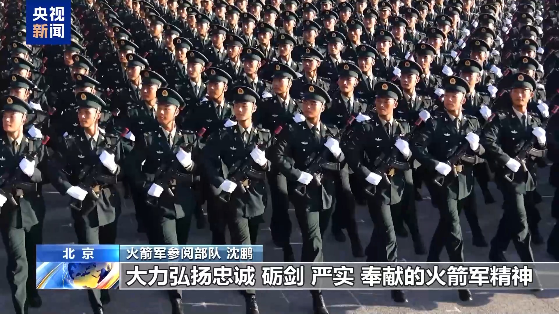 *火箭軍參閲部隊 沈鵬:*紀念抗戰偉大勝利、弘揚抗戰偉大精神。我們火箭軍參閲部隊就是要把這種精神品質融入官兵骨子裏,大力弘揚“忠誠、礪劍、嚴實、奉獻”的火箭軍精神,讓忠誠的基因融入血脈,讓全體參閲官兵在閲兵場上走出大國氣勢,走出王牌擔當。