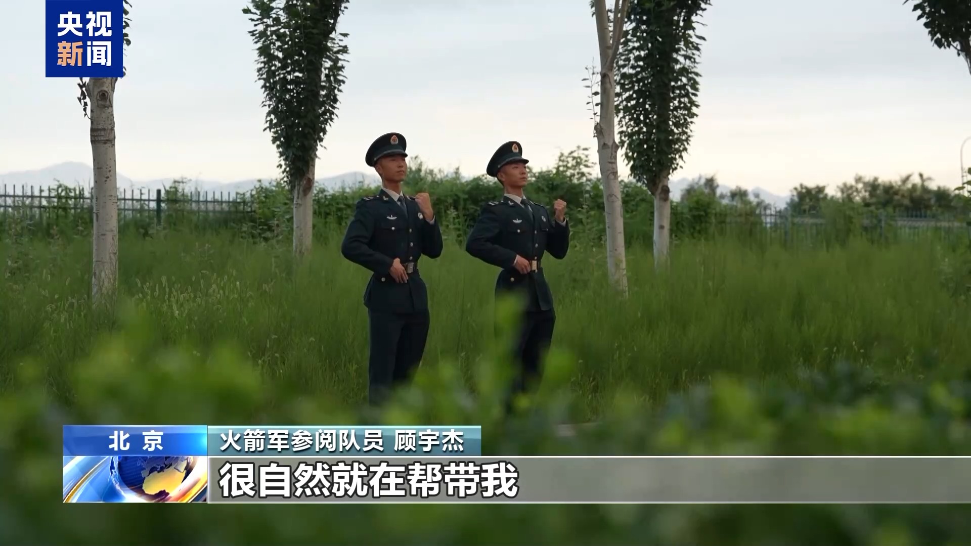 *火箭軍參閲部隊 丁鑠宸:*每次踢腿的時候,我經常踢了很久,感覺自己太累了,真的一動都踢不出去了,這個時候,我就習慣性地往左邊看一下,看一下老廖,他眼神永遠都那麼堅定,永遠都目視前方。從他的臉上好像看不出疲憊,但是他怎麼可能不累,臉上掛滿汗珠,我從他身上學到很多,學會了如何勇敢地走完接下來的軍旅人生路。