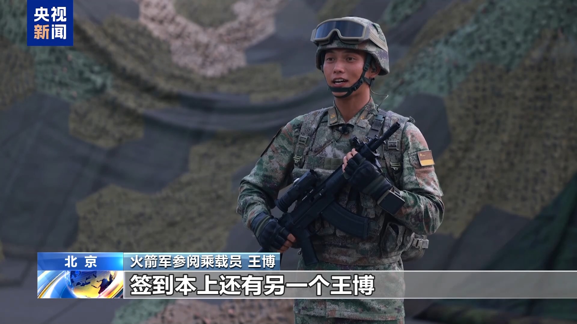 *火箭軍參閲乘載員 王博:*我們要簽到,我看到簽到本上有一個王博,我就直接簽了,後來領導聯繫我,跟我説,説我沒簽到,然後我才發現,簽到本上還有另一個王博。