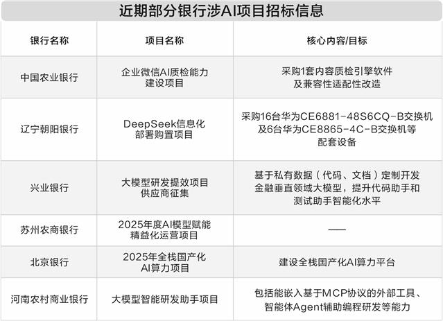 近日,農行、興業銀行、北京銀行等多家銀行相繼發佈與AI相關項目招標信息,覆蓋大模型研發、算力基礎設施建設、智能質檢及研發助手等多個重點方向。