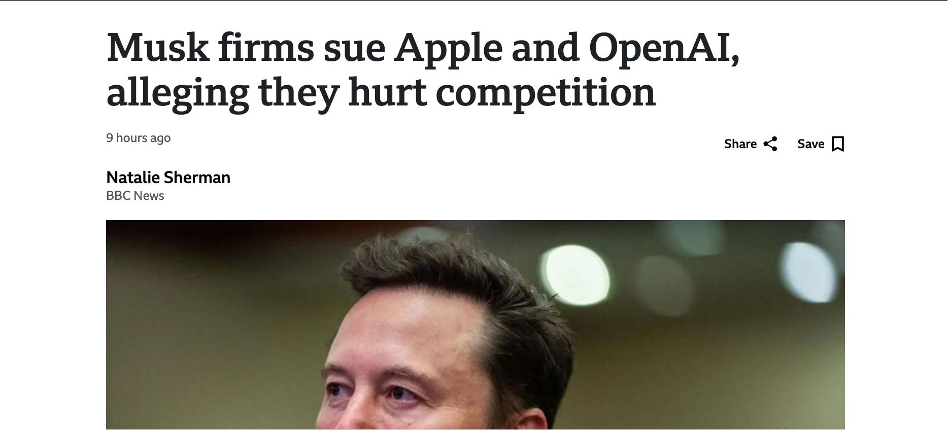 馬斯克旗下xAI正式起訴OpenAI與蘋果:指控非法合謀扼殺AI競爭
