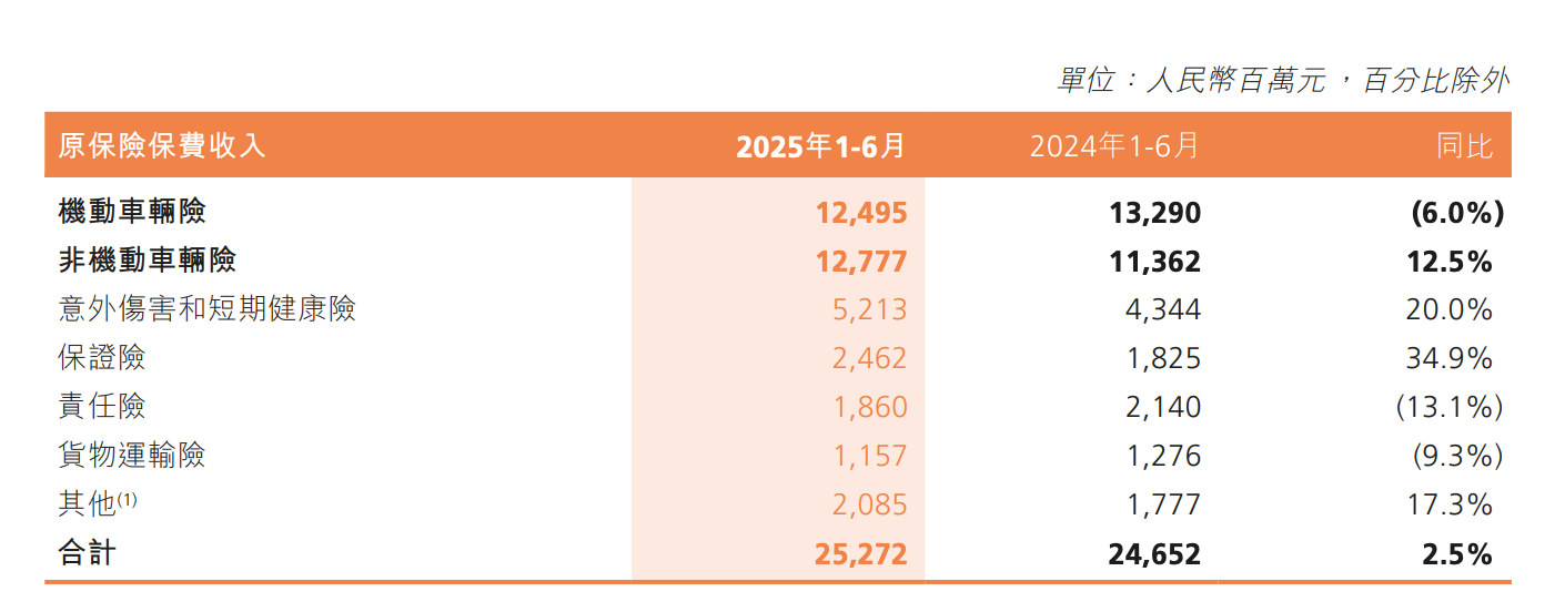 財險業務方面,陽光財險上半年實現原保費收入252.7億元,同比增長2.5%。其中,車險上半年原保險保費收入125.0億元,同比下滑6%。非車險上半年原保險保費收入為127.8億元,同比增長12.5%。