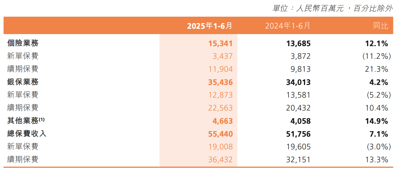 根據中期業績報告,陽光人壽上半年總保費收入554.4億元,同比增長7.1%;新業務價值40.1億元,可比口徑同比增長47.3%。具體業務方面,個險實現總保費153.4億元,同比增長12.1%。銀保實現總保費收入354.4億元,同比增長4.2%。團險、網銷、經代等其他渠道業務上半年總保費收入合計46.6億元,同比增長14.9%。