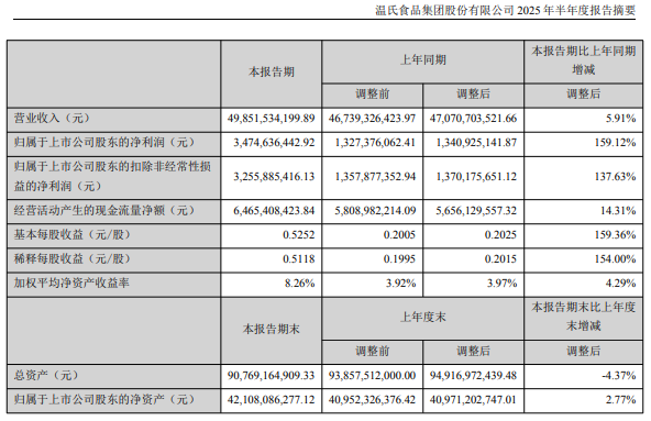 【環球網消費綜合報道】8月28日,國內畜牧業龍頭温氏股份(300498.SZ)發佈2025年半年度報告。報告顯示,儘管面臨禽價低迷的行業挑戰,公司憑藉卓越的成本控制能力和在養豬業務上的突出表現,依然實現了營收與淨利潤的雙增長。上半年,公司實現歸屬於上市公司股東的淨利潤約34.75億元,同比增長159.12%。