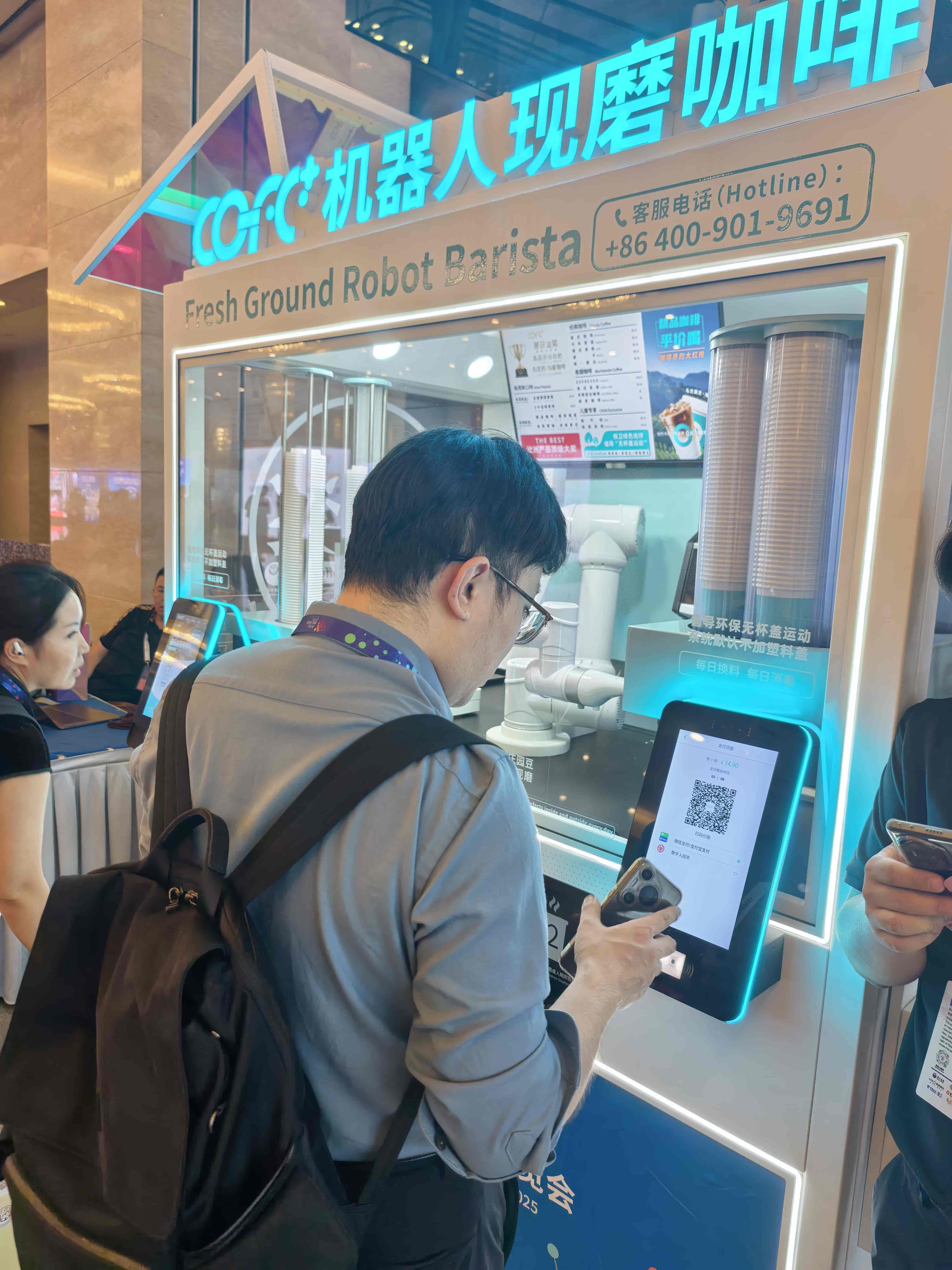 據瞭解,COFE+構建了全球首個“咖啡口味數據庫”,存儲197個國家與城市的上萬種特色飲品配方,支持週週更新菜單、月月推出新品。在運動會現場,觀眾可通過多語言界面點選紐約美式、米蘭拿鐵、東京宇治抹茶等全球風味,實現“一杯咖啡嚐遍世界”。這種“科技+文化”的融合創新,突破了服務機器人“標準化、無温度”的刻板印象。