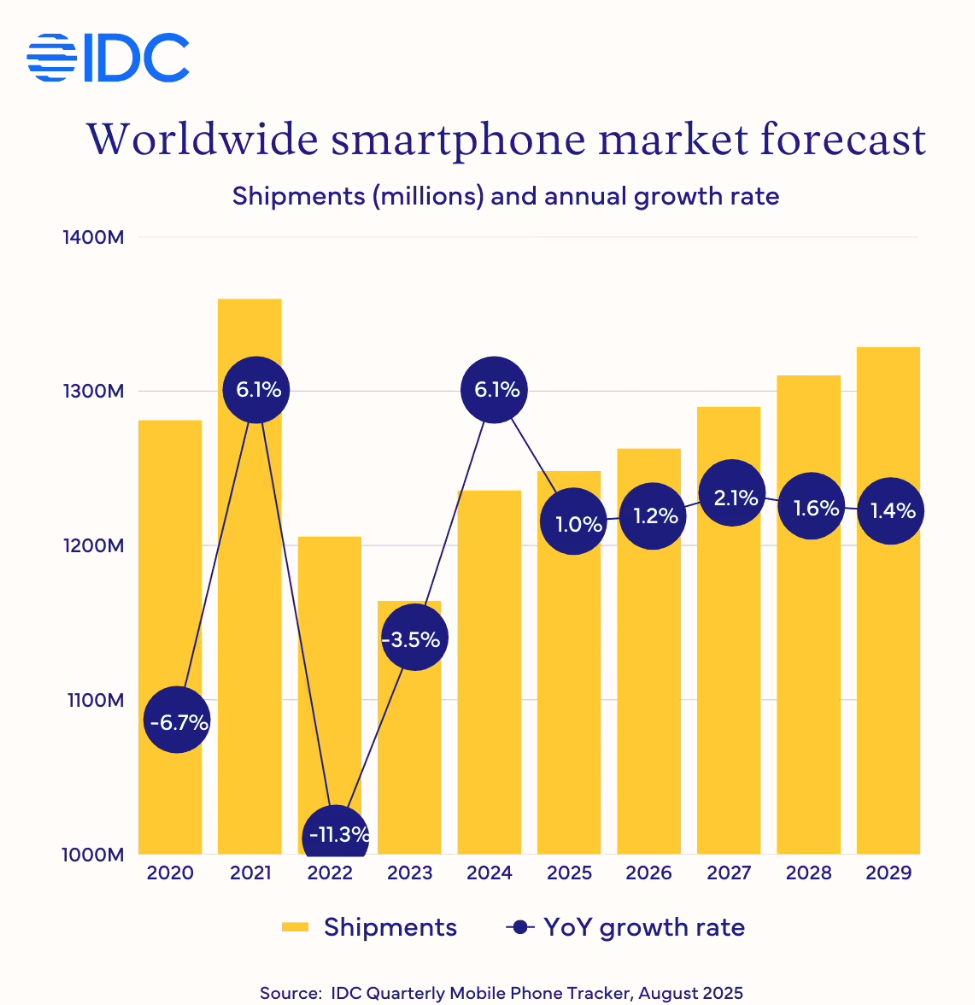IDC預測2025年全球智能手機出貨量達12.4億部,iPhone成增長主力