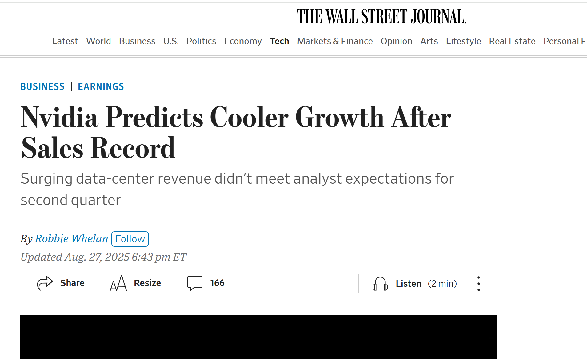 【環球網科技綜合報道】8月28日消息,據華爾街日報報道,英偉達今日發佈2026財年第二財季財報(財季截至2025年7月27日)。數據顯示,該財季公司營收達467億美元,同比增長56%,環比增長6%;其中數據中心業務貢獻營收411億美元,佔總營收比重超八成,持續成為公司發展的核心支柱。