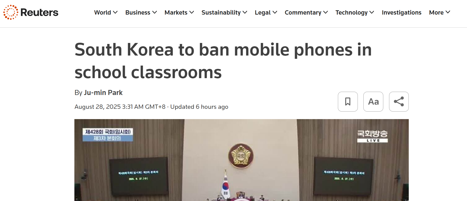 【環球網科技綜合報道】8月28日消息,據路透社報道,韓國國會近日表決通過一項全國性法案,明確自2026年起,在全國範圍內禁止小學、初中學生在上課期間使用智能手機及其他智能設備。該法案將此前多地的校園手機限制措施上升為統一法律標準,為規範校園電子設備使用提供製度依據。