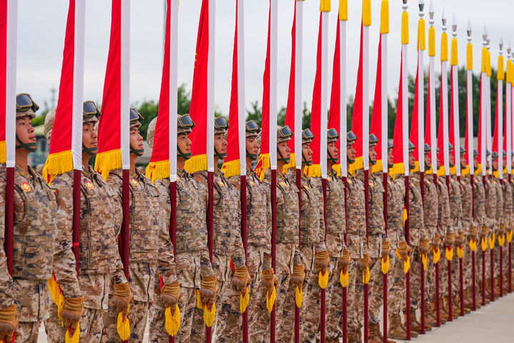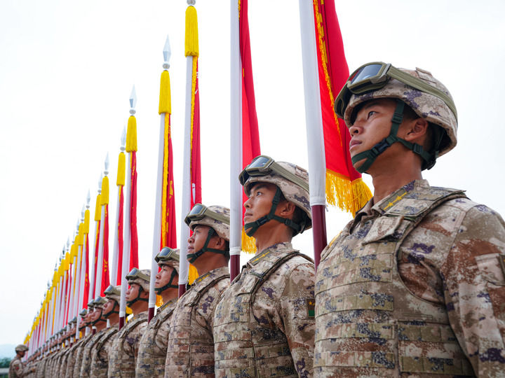 戰旗獵獵,誓言錚錚。“請先烈們放心,你們用生命守護的旗幟,我們誓讓它永遠鮮紅,你們未竟的事業,由我們來擔當。”擎旗手們堅毅的目光和挺拔的身姿,成為訓練場上的獨特風景。