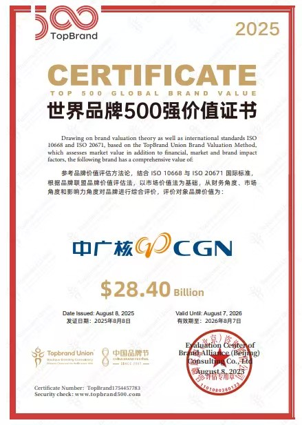 值得注意的是,近期第十九屆中國品牌節發佈的《TopBrand世界品牌500強》榜單顯示,2025年中廣核品牌價值突破2000億元,位列第411位。國務院國資委社會責任局局長李軍表示,中廣核大力實施品牌強企戰略,明確品牌建設方向、優化品牌管理架構、完善品牌制度體系,加大品牌推廣力度,“8·7公眾開放體驗日”已成為我國核能行業知名科普品牌,“華龍一號”入選中央企業品牌引領行動首批優秀“產品品牌”,在中央企業品牌建設對標工作中排名持續提升,連續 12 年獲中央企業負責人經營業績考核 A 級評價,充分彰顯出中廣核品牌引領作用的有效發揮。