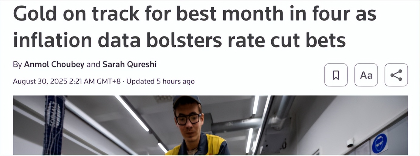 當地時間週五,美盤交易時段,現貨黃金價格上漲0.8%,8月累計漲幅達4.7%。美國12月交割的黃金期貨價格上漲1.2%。同期,美元指數日內走勢相對穩定,但月度累計跌幅超2.2%。美元走弱使得以美元計價的黃金對海外買家更具吸引力。