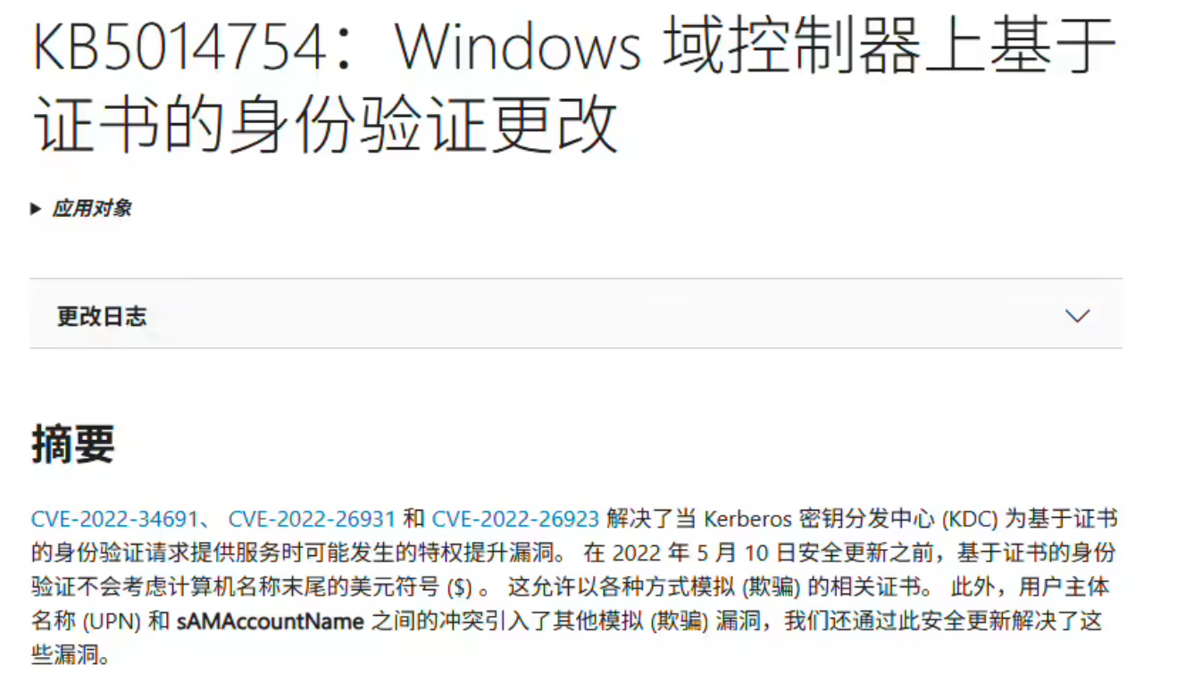 據悉,此次調整涉及三項編號為CVE-2022-34691、CVE-2022-26931和CVE-2022-26923的漏洞,均與Windows域控制器使用的Kerberos認證協議相關。Kerberos是Windows Active Directory的核心身份驗證機制,若被利用,攻擊者可繞過認證流程,獲取域管理員權限或偽造票據實施橫向滲透。微軟曾在2022年8月的補丁日中發佈修復程序,但為兼容舊系統,保留了部分註冊表鍵的臨時支持。