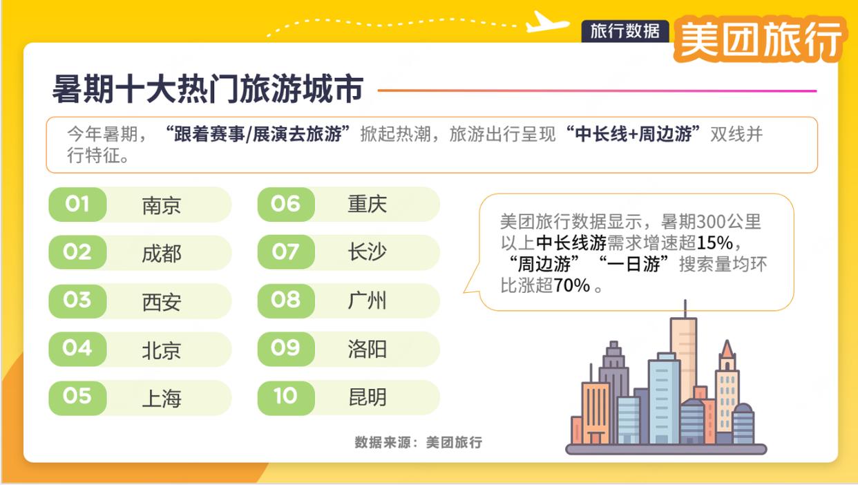 美團旅行發佈《2025年暑期文旅消費觀察》,南京、成都、西安入選暑期熱門旅遊城市Top10