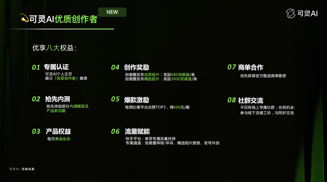 可靈AI推出全新“優質創作者”計劃,持續賦能創作者