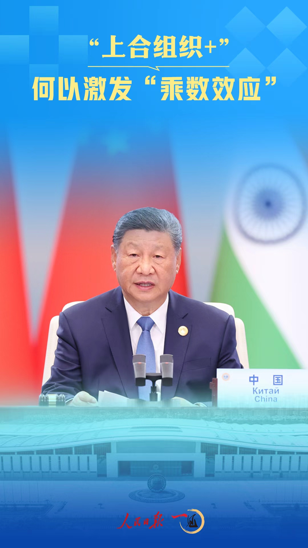 “上合組織+”,一個加號,一縱一橫,交匯於同一種追求、勾勒出同一個願景:“讓推進全球治理體系變革、推動構建人類命運共同體的成果更多更好造福全人類!”