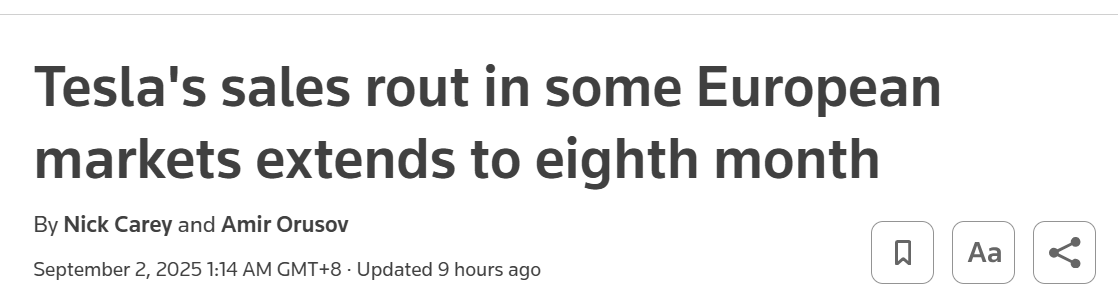 【環球網科技綜合報道】9月2日消息,據路透社報道,今年8月特斯拉在歐洲多個市場的銷量持續下滑,不過在挪威、西班牙和葡萄牙市場實現逆勢增長。特斯拉正面臨比亞迪等車企的激烈競爭。