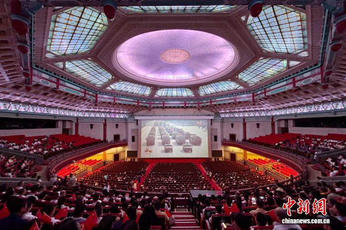 為紀念中國人民抗日戰爭暨世界反法西斯戰爭勝利80週年,“銘記歷史,傳承薪火”千人觀看閲兵直播活動當天在廣州舉行。其中,來自美國、英國、新西蘭、馬來西亞等25個國家的青年僑領、歸僑代表等60人在中山紀念堂與各行業代表、學生代表等1000餘人共同觀看直播。