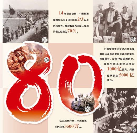 作為東方主戰場,中國付出了傷亡3500多萬人的民族犧牲,抗擊了日本軍國主義主要兵力,對日本侵略者的徹底覆滅起到了決定性作用。正如毛澤東同志所指出的,這是“戰爭史上的奇觀,中華民族的壯舉,驚天動地的偉業”。