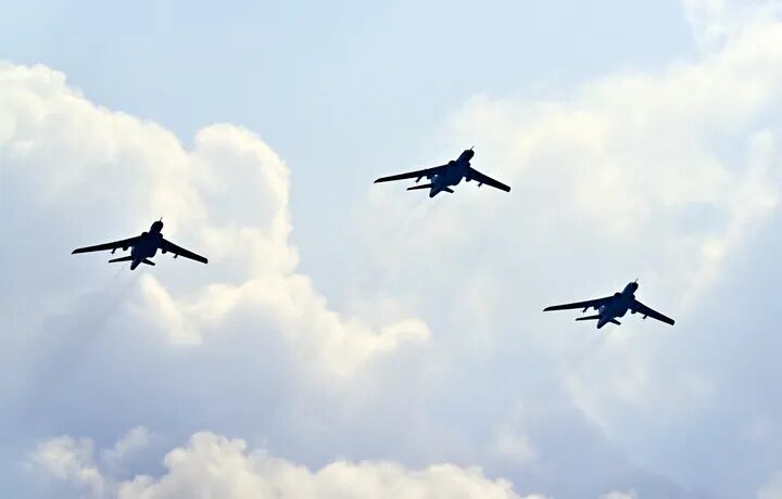 這是轟炸機梯隊接受檢閲。新華社記者 李鑫 攝