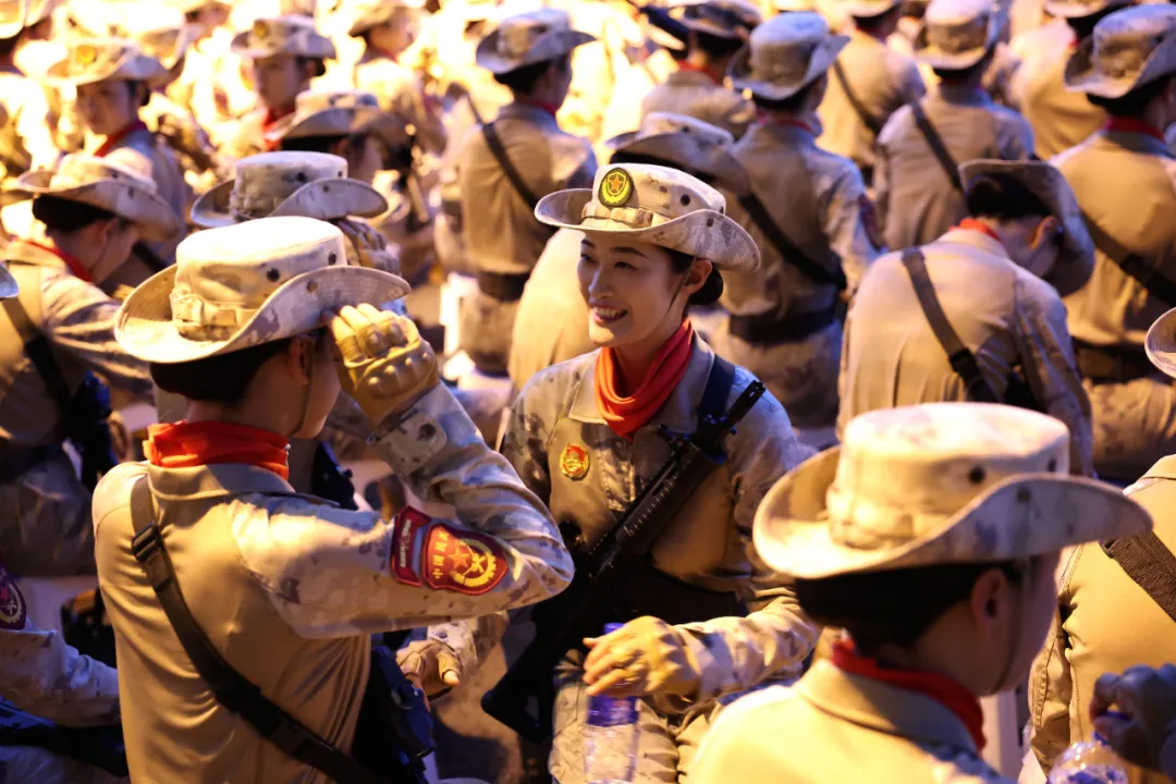 這是紀念大會開始前,受閲部隊在整理着裝。新華社記者 雒圓 攝