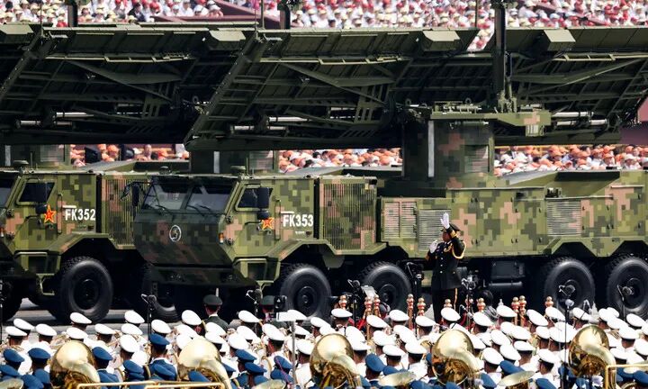 這是核導彈第二方隊接受檢閲。 新華社記者 楊冠宇 攝