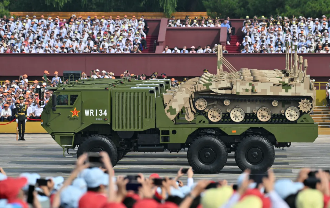 這是陸上無人作戰方隊通過天安門廣場。新華社記者 孫瑞博 攝