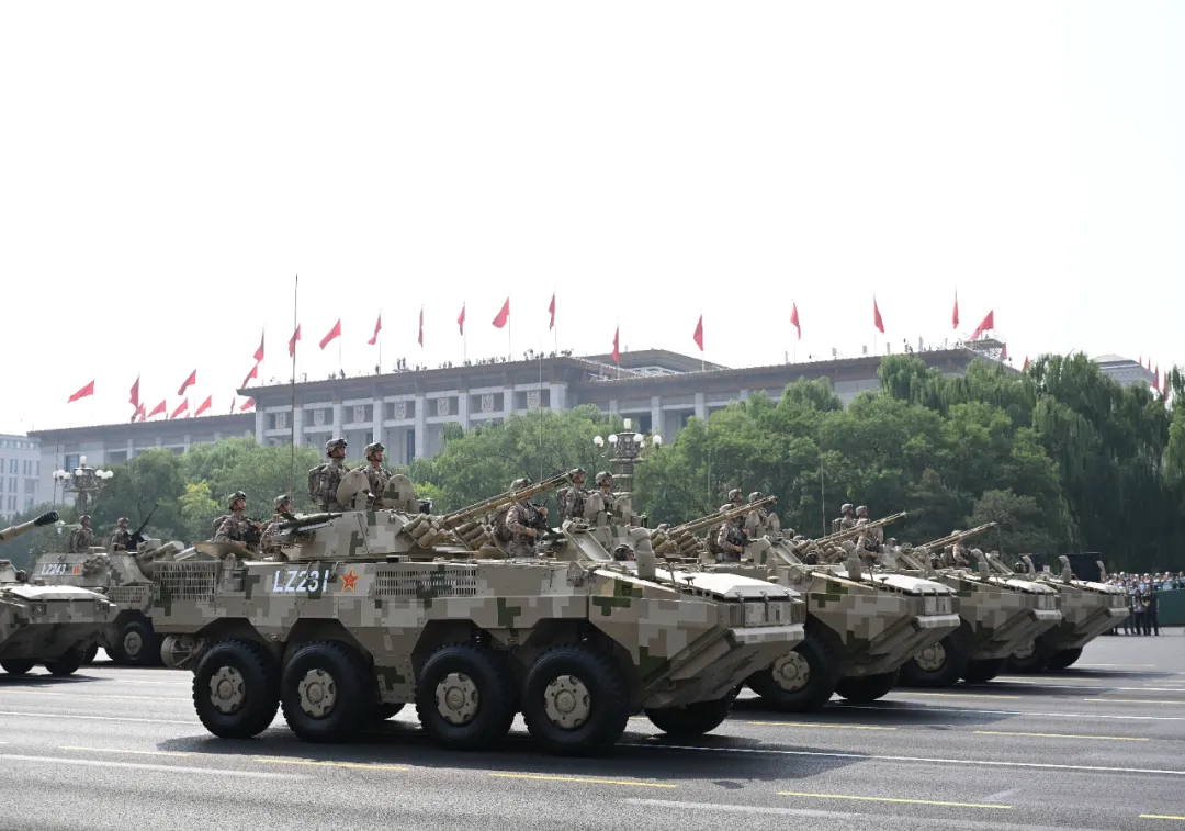 這是陸上無人作戰方隊接受檢閲。新華社記者 李一博 攝