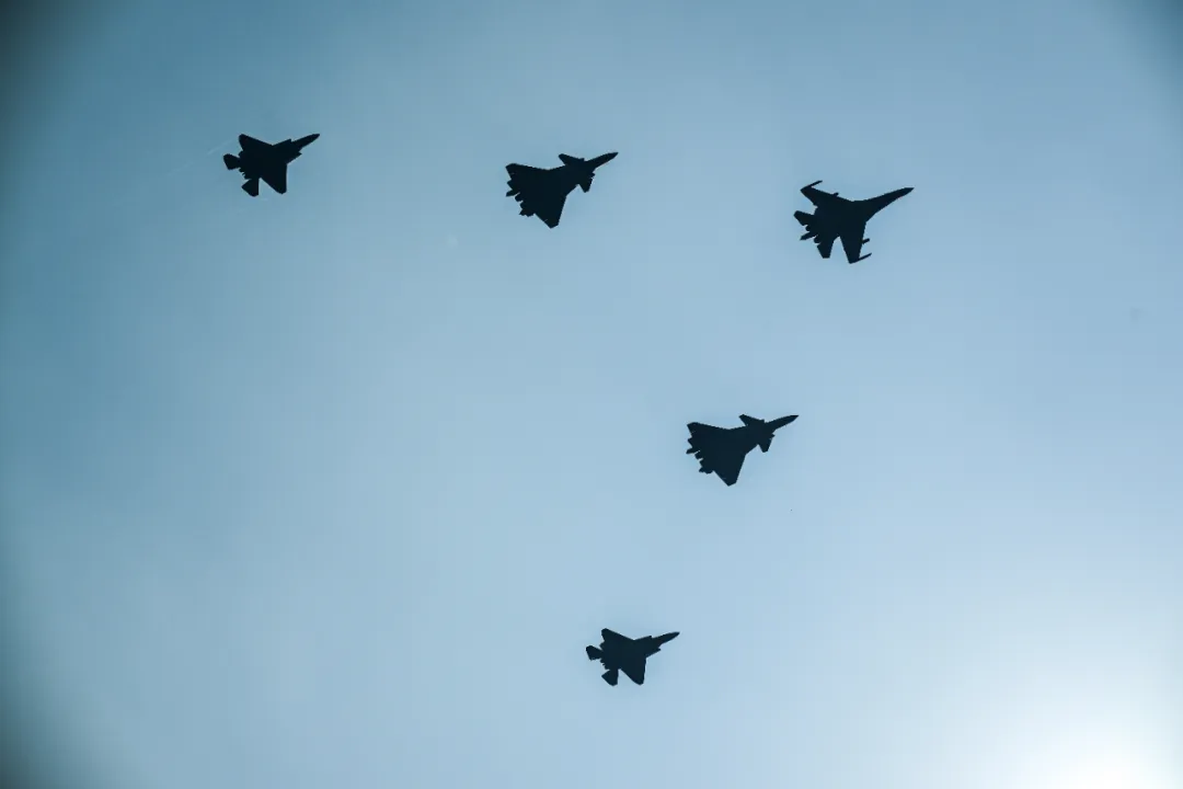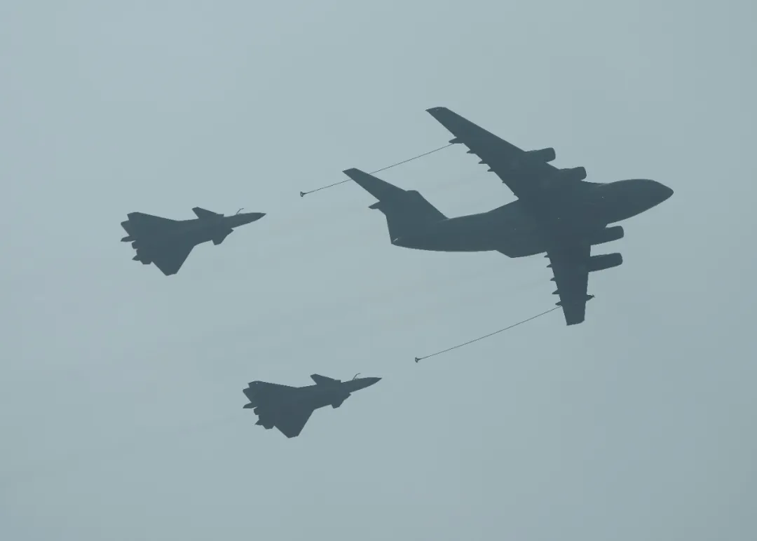 這是加受油機梯隊從空中飛過。新華社記者 肖藝九 攝