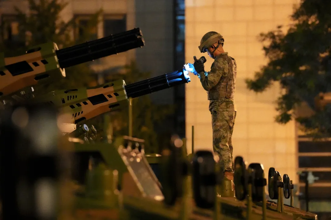 這是紀念大會開始前,受閲部隊在準備。新華社記者 陳思汗 攝