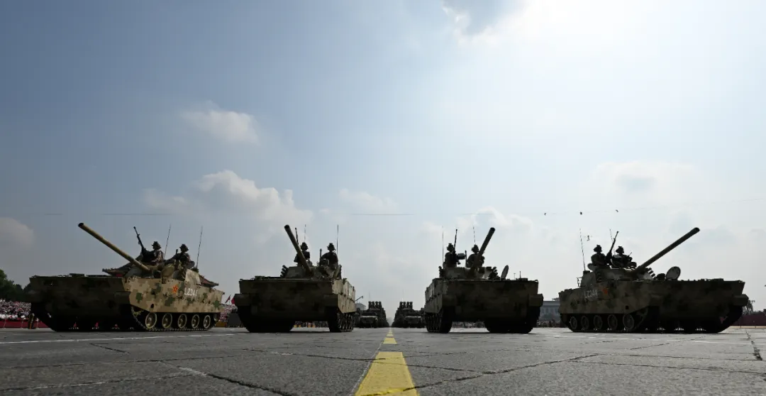 這是裝備方隊接受檢閲。新華社記者 王鵬 攝