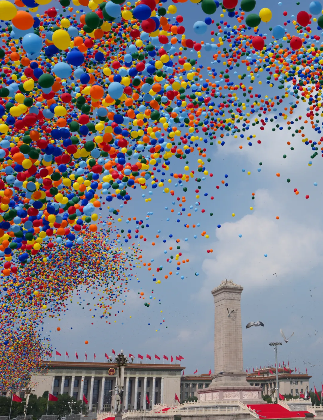 這是天安門廣場放飛氣球和鴿子。新華社記者 江文耀 攝