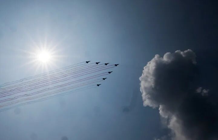 這是教練機梯隊接受檢閲。新華社記者 孫凡越 攝