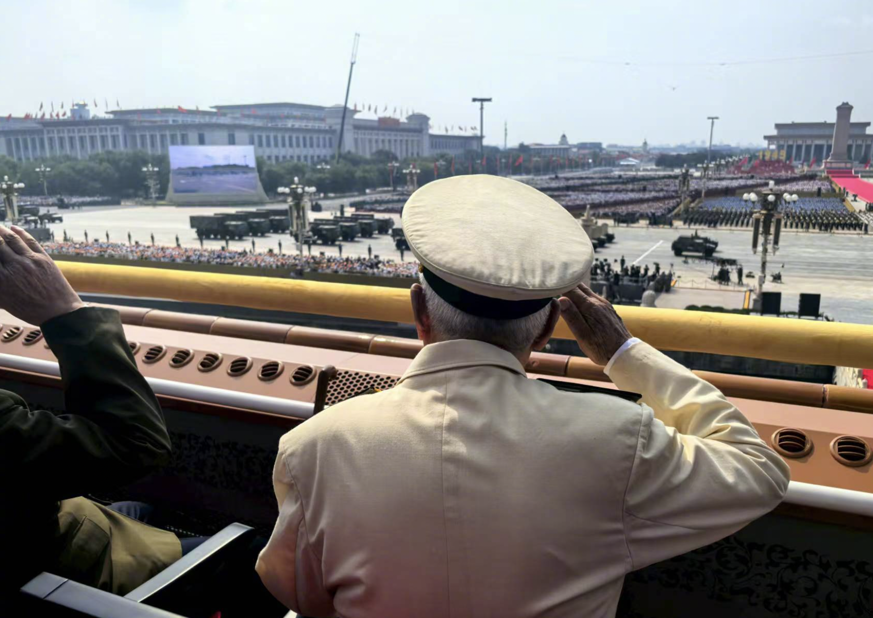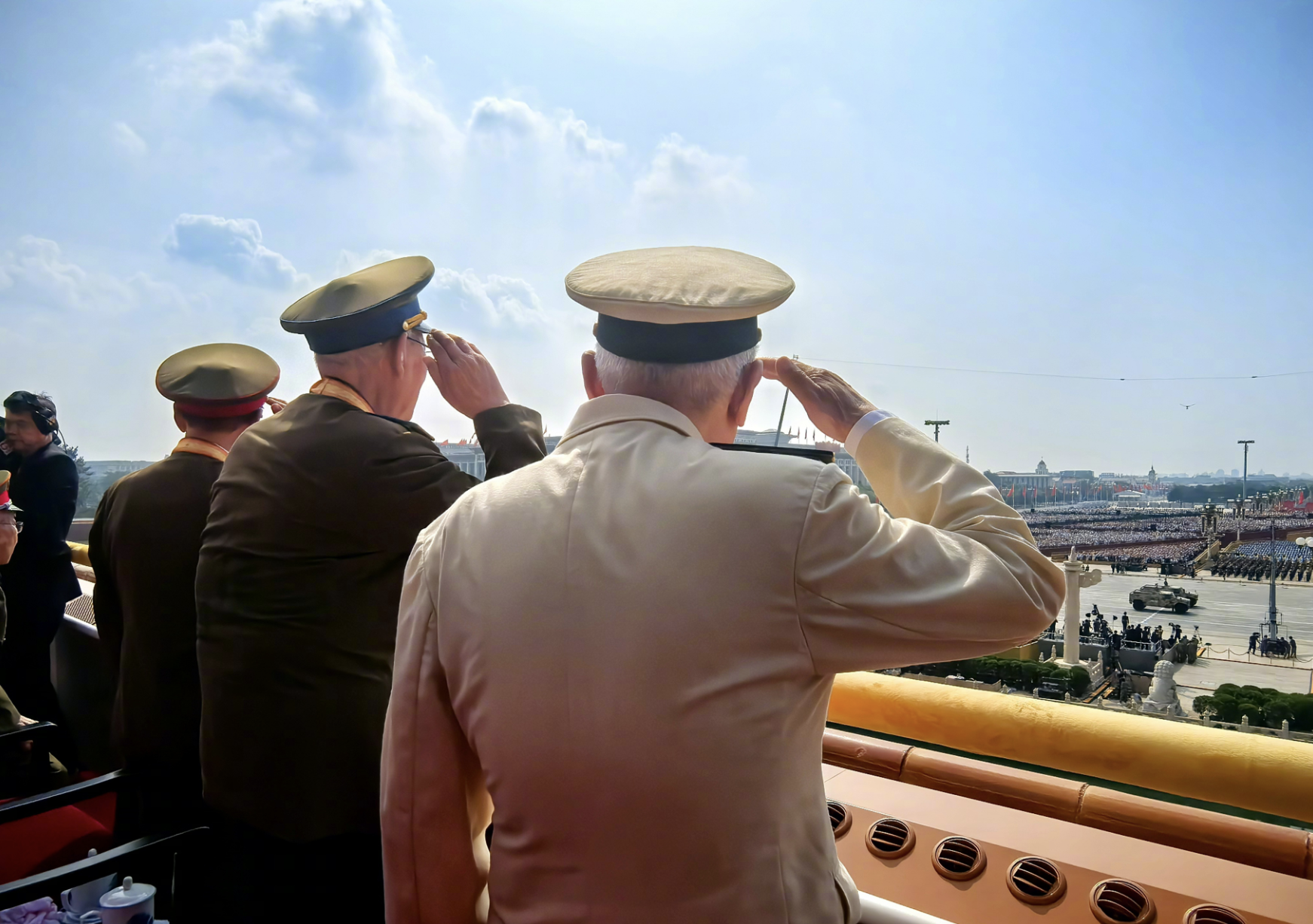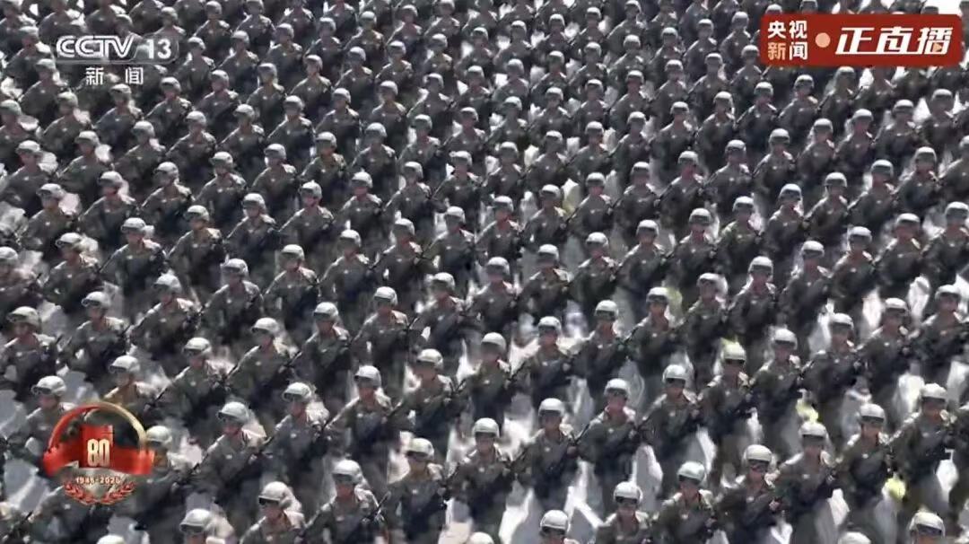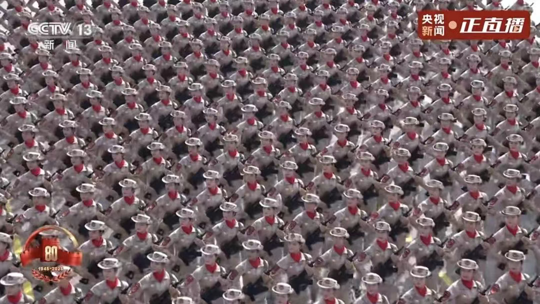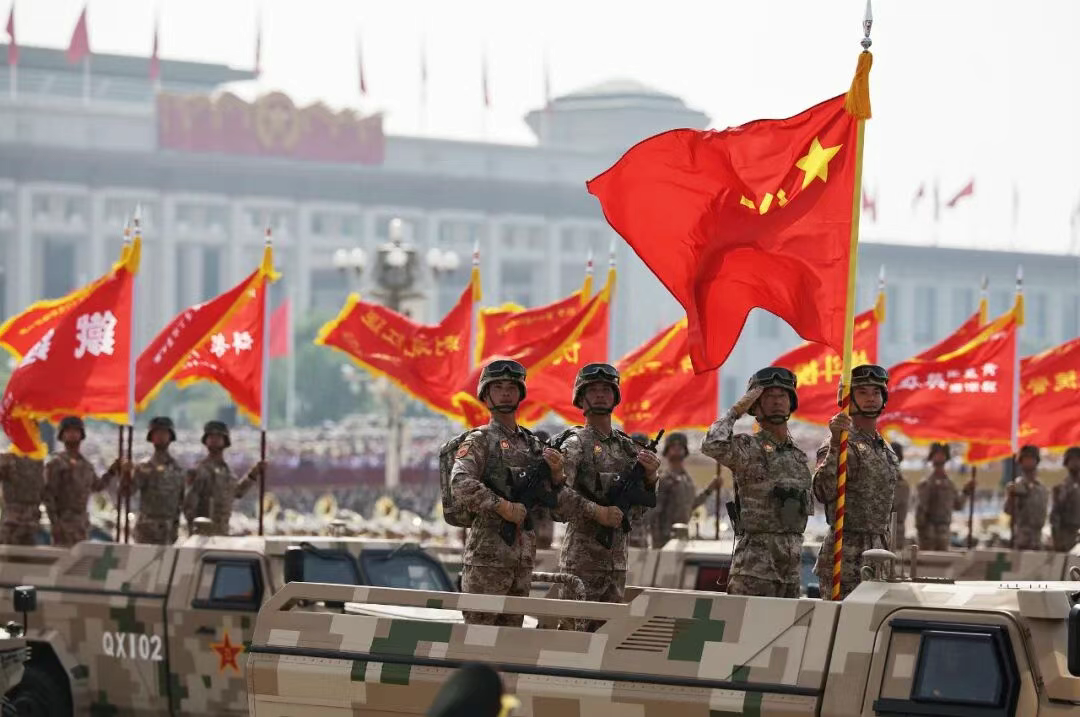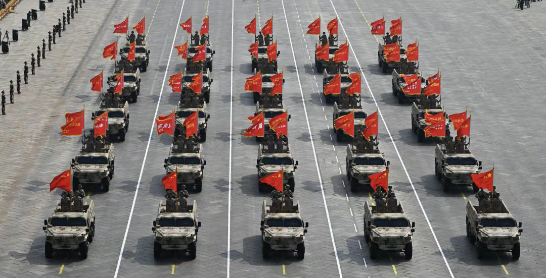 80面抗戰英模部隊榮譽旗幟組成戰旗方隊
