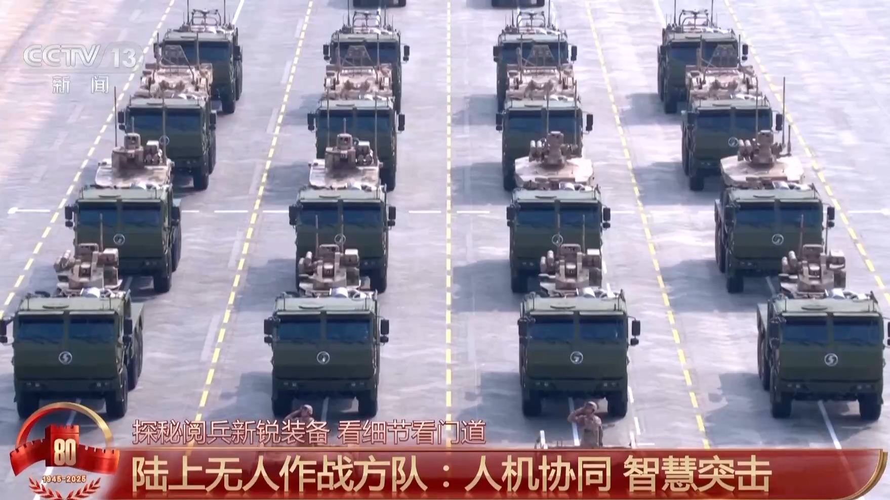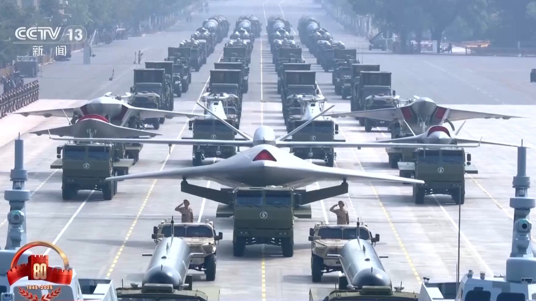 在紀念中國人民抗日戰爭暨世界反法西斯戰爭勝利80週年閲兵活動中,無人作戰羣陸上、海上、空中無人作戰裝備集中亮相。
