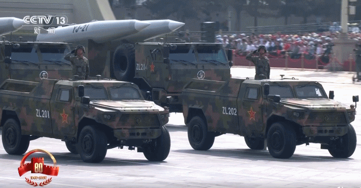 此次接受檢閲三型高超音速導彈的鷹擊-21、東風-17、東風-26D導彈,三型導彈具有飛行速度快,突防能力強,命中精度高,是具備全天候作戰能力的新型殺手鐧。