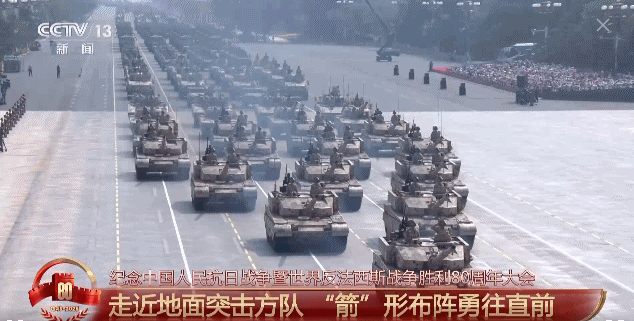 在這次閲兵中,由99B坦克、100坦克、100支援戰車編成的地面突擊方隊呈*“箭”*形佈陣,寓意打贏之箭、勝利之箭。